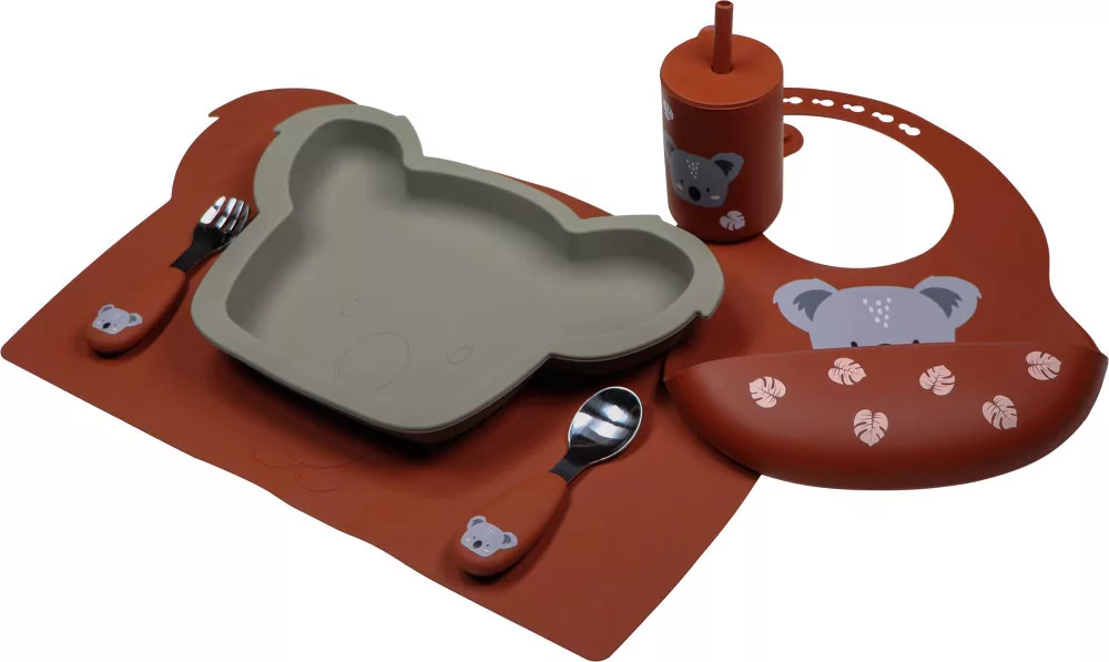 Ezzel a koala formájú szilikon tányérral minden kisgyerek szívesen ül majd asztalhoz. Anyagának köszönhetően a tányér jól tapad meg a felületeken, nem lehet könnyen felborítani. A tányér meglehetően nagy méretű és a fülecskéknek köszönhetően akár, egymástól elkülönülve is tehetünk bele különböző ételeket.A tányér könnyen tisztítható, mosogatógépbe is tehető.