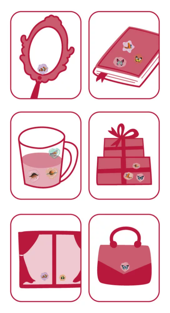 18 db különleges matrica, mely élethűen ábrázolt képeken mutatja be az élőlényeket. A matricák különlegességét alakjuk és anyaguk adja.