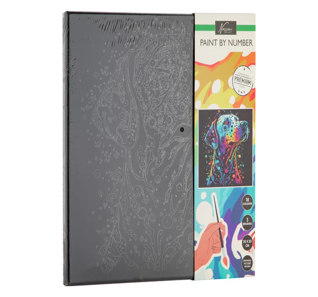 Nassau festés számok szerint fekete vászonra, Kutya 30 x30 cm CraftArt
