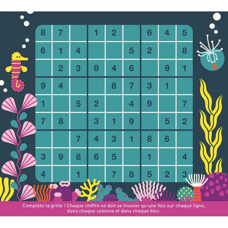 Merülj el és fedezd fel a tenger alatti világot! Ez a foglalkoztató készlet megannyi szórakozást nyújt! Képkereső, labirintus, pont összekötő feladatok és sudoku is található benne. A hátlapokból pedig egy óriás labirintust tudsz összeállítani. Megtalálod a kiutat?