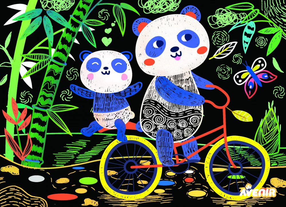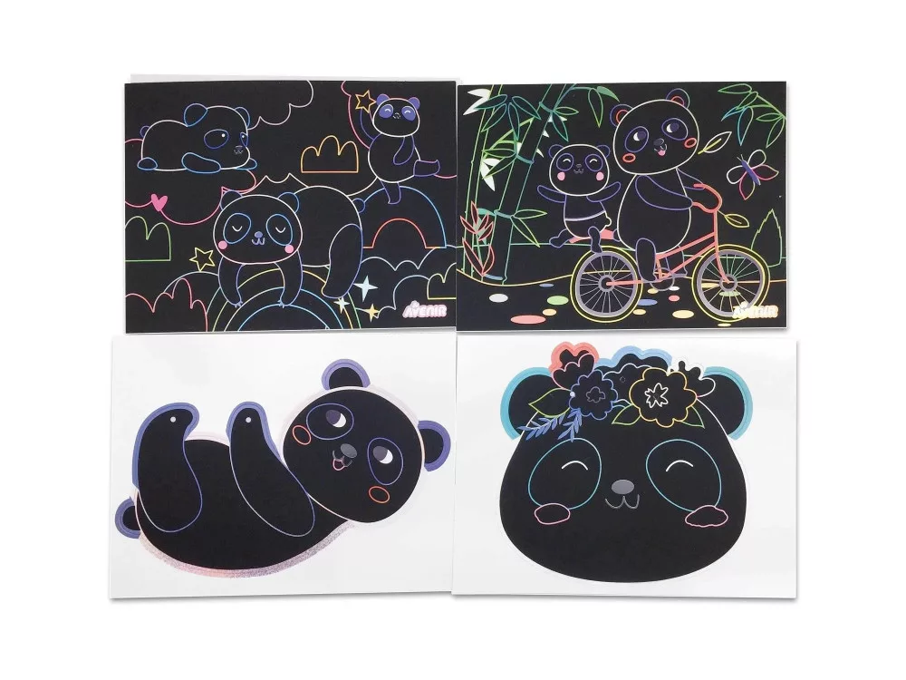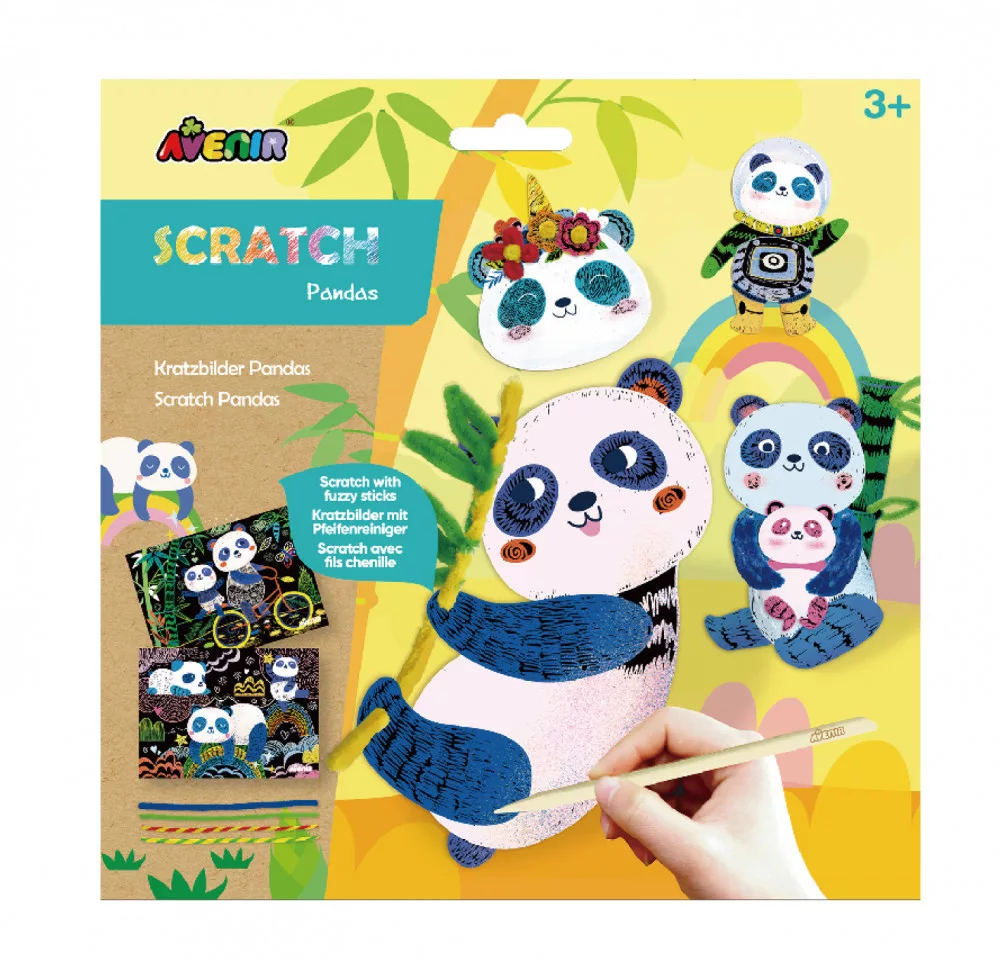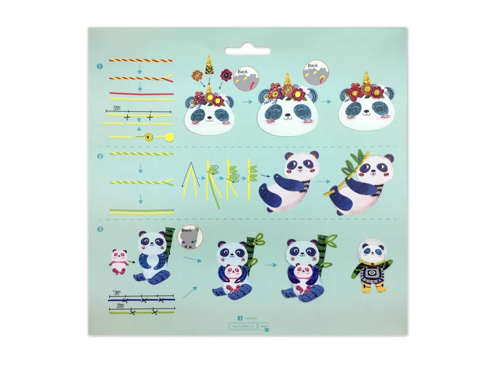 Készíts 3D modelleket és képeket karckép tecnikával és zsenília drótokkal! Elevenítsd meg a pandák földjét és alkoss cuki figurákat. A készlettel 3D modelleket és 2 karcképet tudsz elkészíteni.
