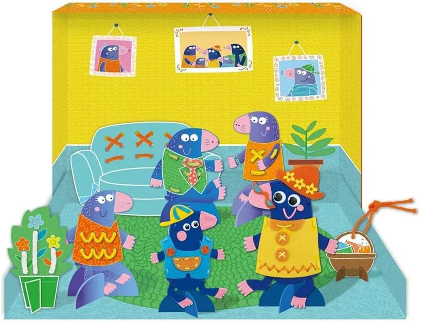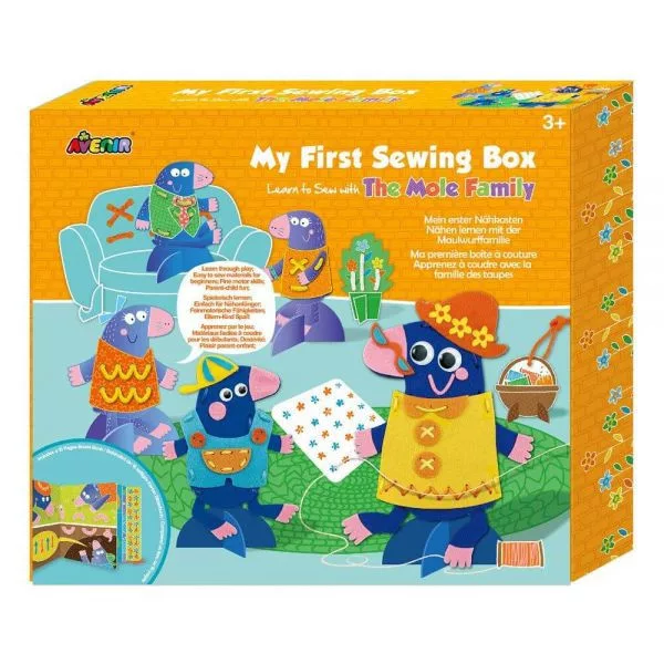 Az Első varrós dobozom az Avenirtől egy nagyszerű készlet a gyerekek számára, mellyel megtanulhatják a varrás alapjait és közelebb kerülhetnek a természethez. A dobozban található egy varrós könyv, amely lépésről-lépésre mutatja be a varrási technikákat a vakond család segítségével. A könyv széle perforált, így az adott feladatokat egyből ki is lehet próbálni. A dobozban található vakond figurákat ezután már önállóan is ki lehet varrni és 3D modelleket lehet belőlük készíteni. A doboz belseje egyben a vakond család otthona is, ahol különböző jeleneteket játszhatnak el a gyerekek.
