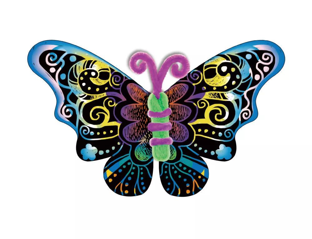 20 gyerkőc számára elegndő alapanyagot tartalmazó kreatív játékkészlet, amiben rengeteg karcolható lap, valamint zsenília rudak és karceszközök találhatók.
