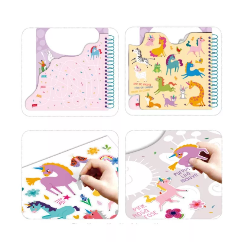 A lapozható színező könyvben logikai fejtörők és újra használható matricák is találhatók, így izgalmas játék vár rád akár utazás közben is!