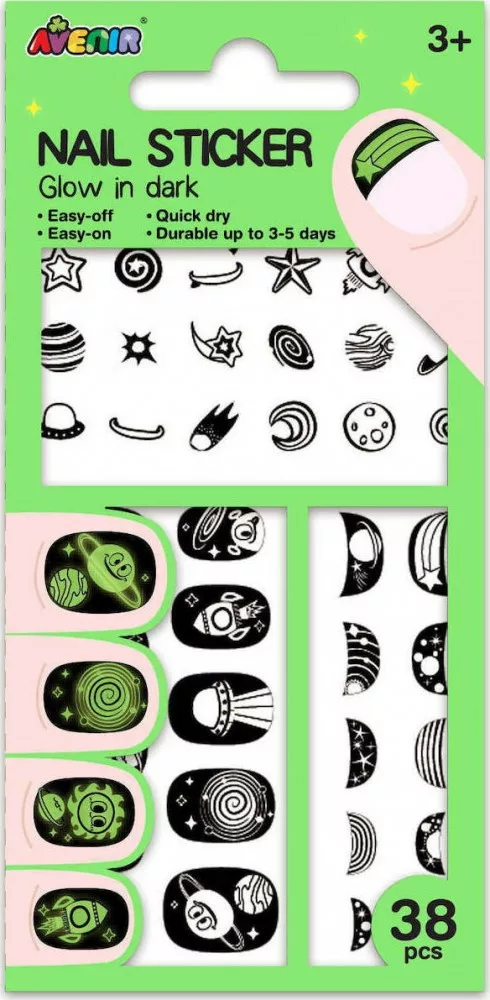 38 db-os sötétben világító körömmatrica készlet az Avenir márkától.