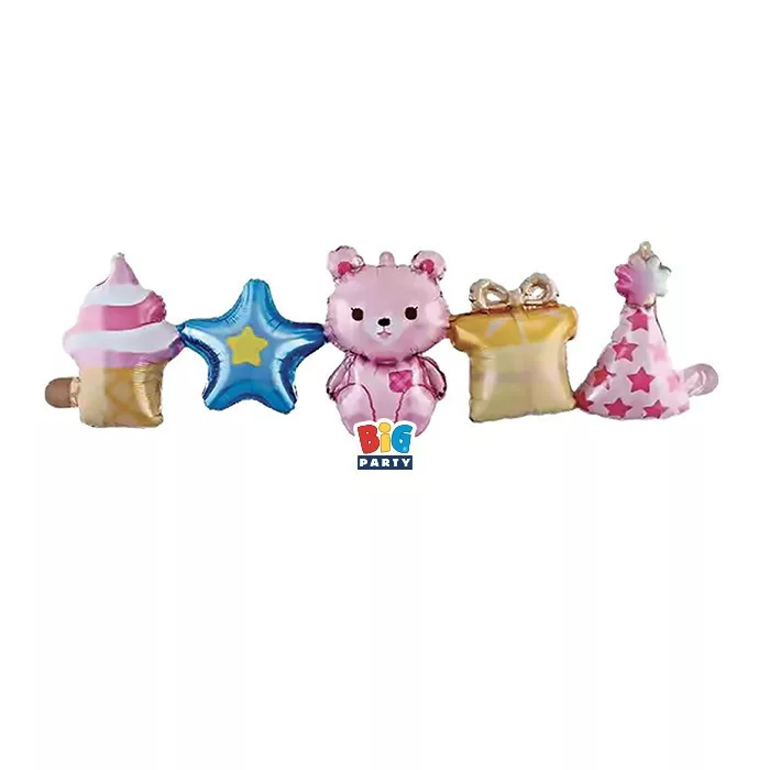 Forma fólia lufi girland 101x32 cm, Rózsaszín macis