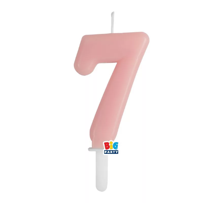 Egyszínű babarózsaszín gyertya, amely tökéletes kiegészítője lehet a születésnapi tortának vagy süteménynek.