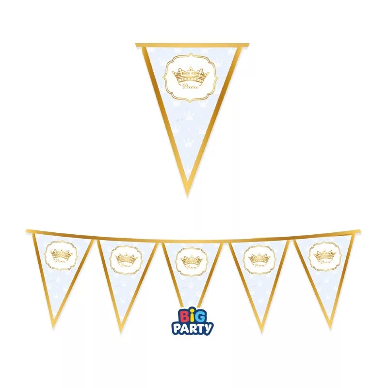Egészítsd ki az ünnepi dekorációt ezzel az aranyos zászlófüzérrel, amely Prince felirattal és kék színnel lett ellátva.