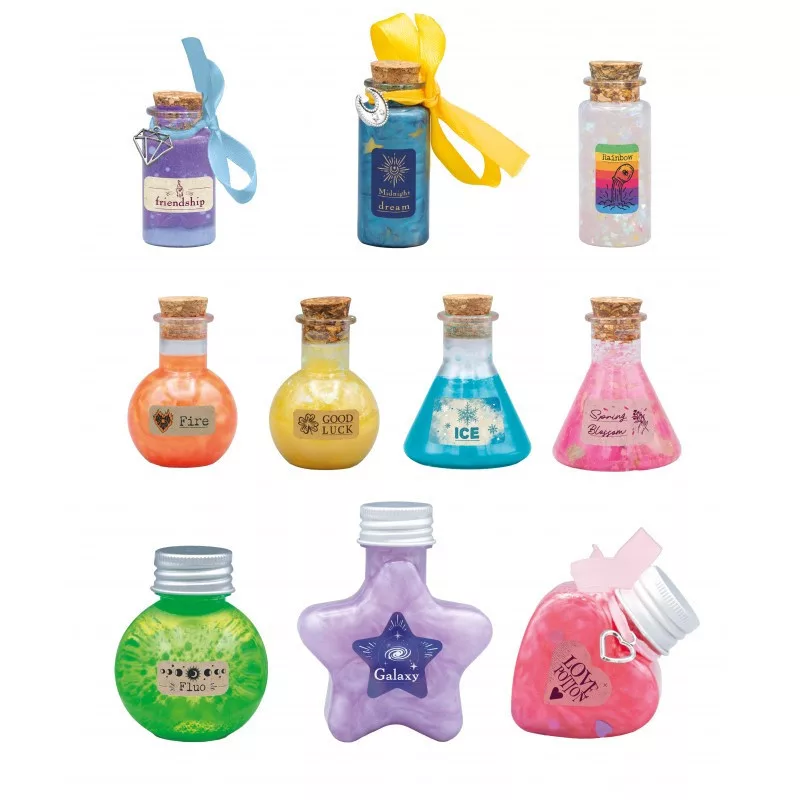 Díszítsétek ki az italokat gyöngyházfényű pigmentekkel, konfettivel, szalagokkal és medálokkal! Használjátok a világító alapot, hogy a bájitalokat mesés, éjszakai lámpává alakíthassátok!