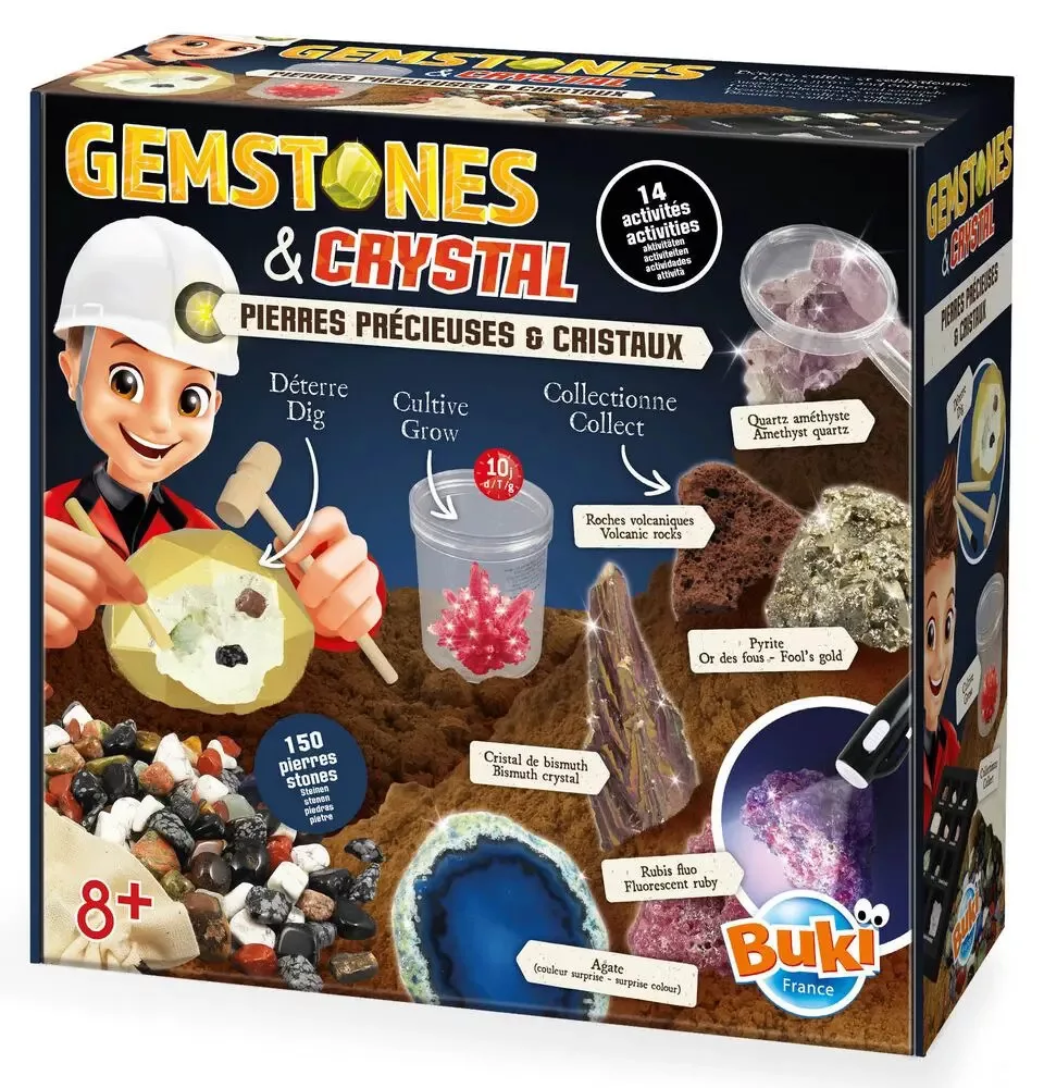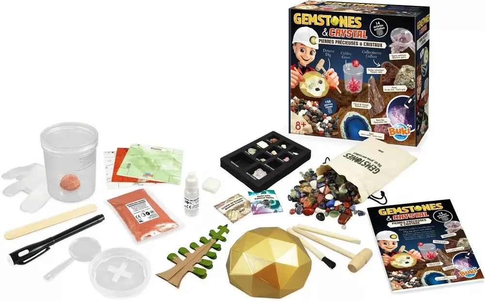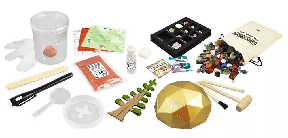 Növessz óriási kristályokat és instant kristályokat. Figyeld meg a különféle kőzeteket: vulkáni kövek, kvarc, bolondok aranya, fluoreszkáló kőzet, csiszolt achát, bizmutkristály, stb.