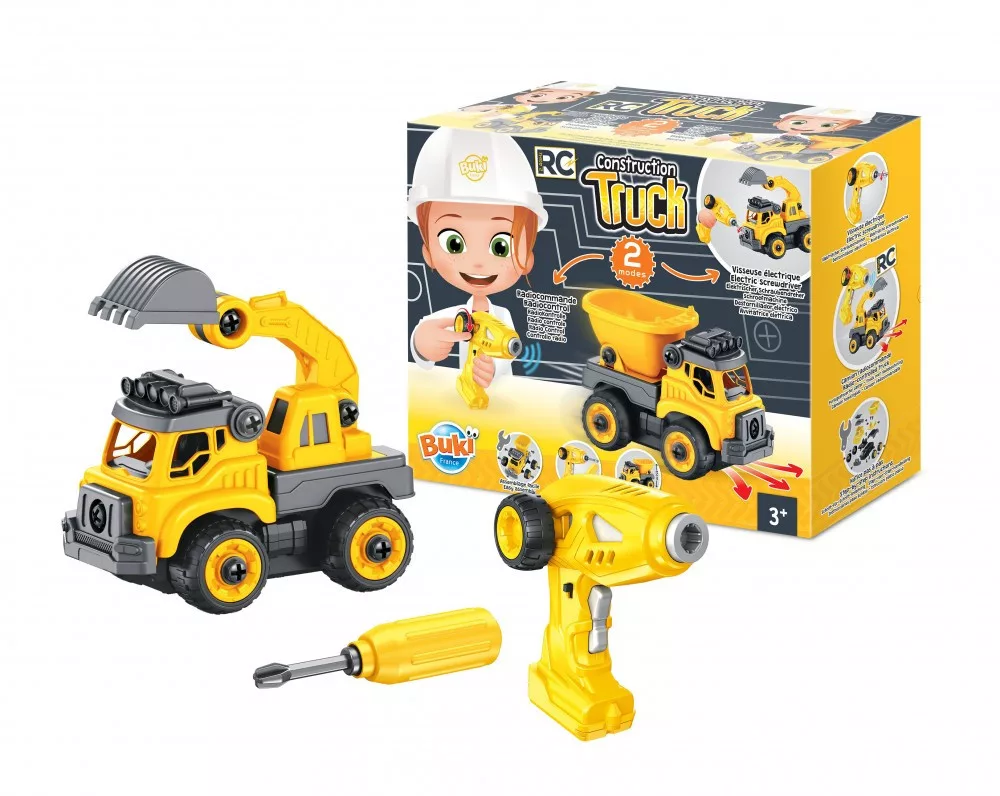 Szereld össze a markológépet vagy a teherautót a csavarhúzó és az elektromos csavarbehajtó segítségével majd irányítsd! Az elektromos csavarbehajtó távirányítóként is funkcionál, amely lehetővé teszi a teherautó vezérlését!