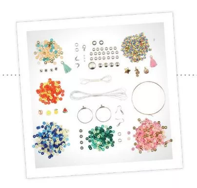 A készlet mindent tartalmaz, amire szükséged lesz az egyedi kiegészítők megtervezéséhez és összeállításához: