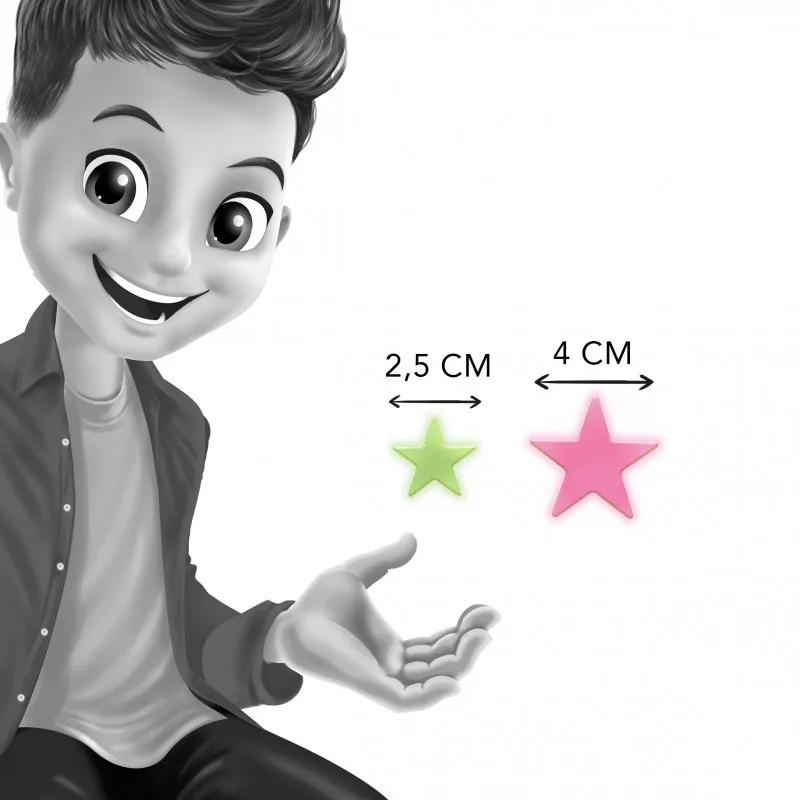 Két különböző méretű csillagok találhatók a csomagban: 2,5 cm és 4 cm.
