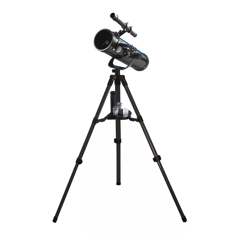 Fedezd fel a csillagos eget, a bolygókat a Hold krátereit! A teleszkóphoz tartozik egy 76 mm átmérőjű lencse és három cserélhető okulár (20, 12,5 és 4 mm).