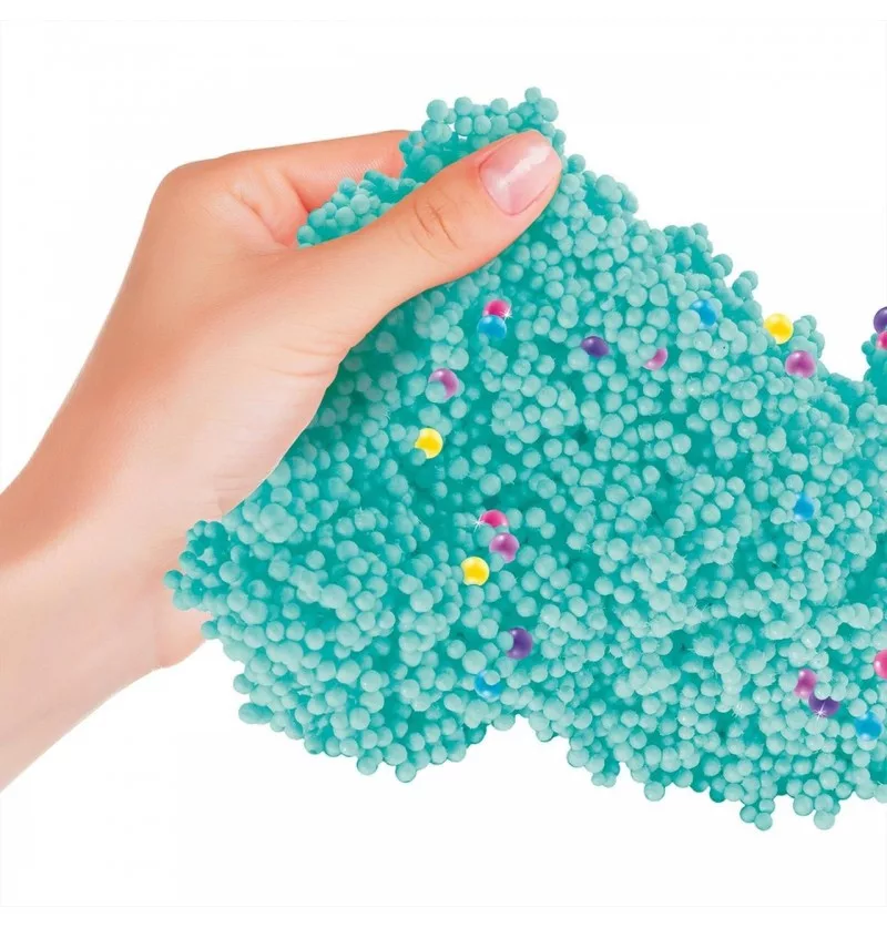 Az egyik dobozban egy hagyományos kék színű slime található, míg a másikban egy rózsaszín habos slime, amelyet az apró rózsaszín hungarocell golyók tesznek különlegessé és rendkívül puha tapintásúvá.