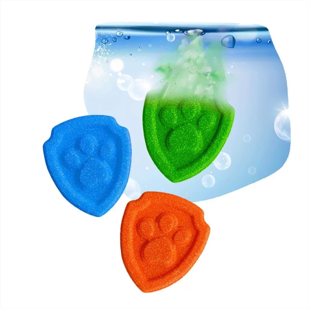 Ez a csomag 3 darab Mancs Őrjárat embléma formájú bombát tartalmaz. Mandula olajjal készül, és kellemes kólás gumicukor illatot áraszt.