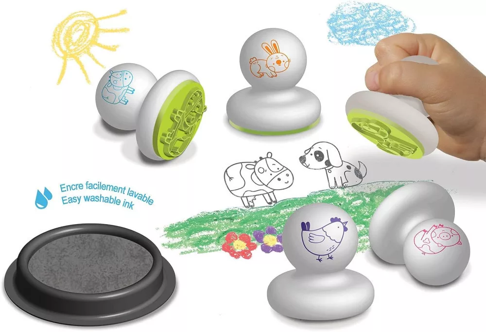 Ez a készlet lehetővé teszi a kisgyermekek számára, hogy felfedezzék a a szórakoztató nyomdázást, valamint fejleszti a finommotoros készséget.