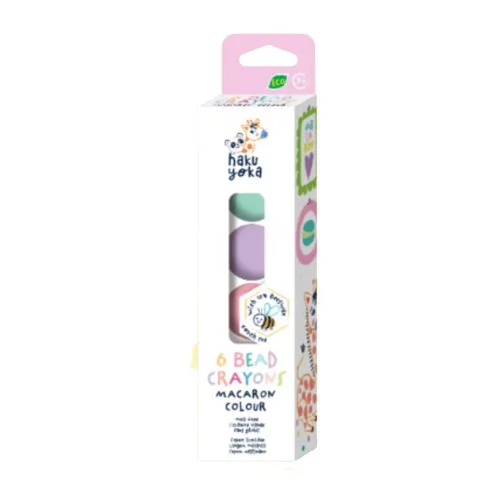 A Haku Yoka zsírkréták különleges felületüknek és alakjuknak köszönhetően kényelmes és biztos fogást biztosítanak a kicsik számára. A természetes színekkel örömteli lesz a rajzolás minden gyerkőc számára. Az öko kréták 10% méhviasz felhasználásával készültek, csomagolásuk FSC papírból gyártott. Nem hagynak foltot. A csomagban 6 db különböző színű gyöngy alakú kréta található.