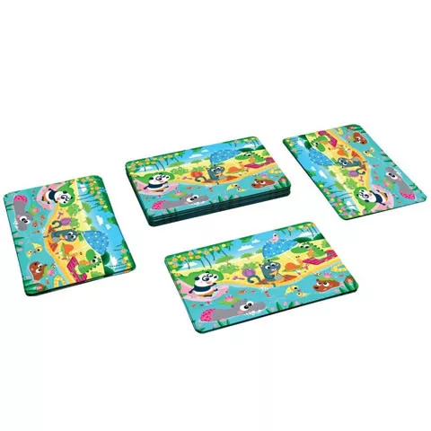 Csupán két helyen tér el az előtted és a középen lévő kártya egymástól. Vajon hol l ehet a két különbség? Valóban a macska mögött lévő labda színe az egyik. És igen, itt a másik, hiszen az egyik képen sajtot eszik, a másikon pedig egy almát! A Difference Junior-ban nincs más dolga a gyerekeknek, mint megtalálni két nagyon hasonló kép között a apró és alaposan elrejtett eltérést. Kedves kis állatok játszanak a színes képeken, pandák, madarak, vízilovak úszkálnak és várják huncut módon, ki veszi észre leghamarabb a különbséget. A nagysikerű Difference játék kifejezetten gyerekeknek szánt változata.