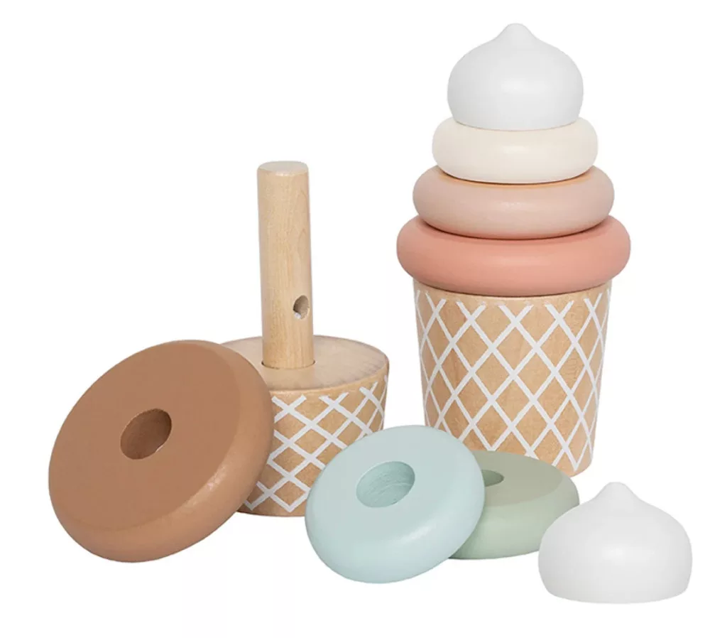 Építsd meg álmaid fagylaltját! Az egymásra rakható játékfagylaltunkkal a gyerekek újra és újra elkészíthetik saját ízletes kreációikat. A lágy pasztellszíneknek és a gyönyörű fa részleteknek köszönhetően a fagylalttal legalább annyira szórakoztató játszani, mint amennyire jó ránézni! Serkenti a képzelőerőt és fejleszti a motoros készségeke. Tökéletes a kis szakácsok számára, akik szeretik a fantáziadús játékot a konyhában. Tartós és időtálló játék, ami akár több generációt is kiszolgál.