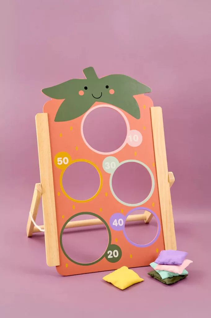 A játéktábla 100%-ban fából készült, játékos eper alakú dizájnnal.