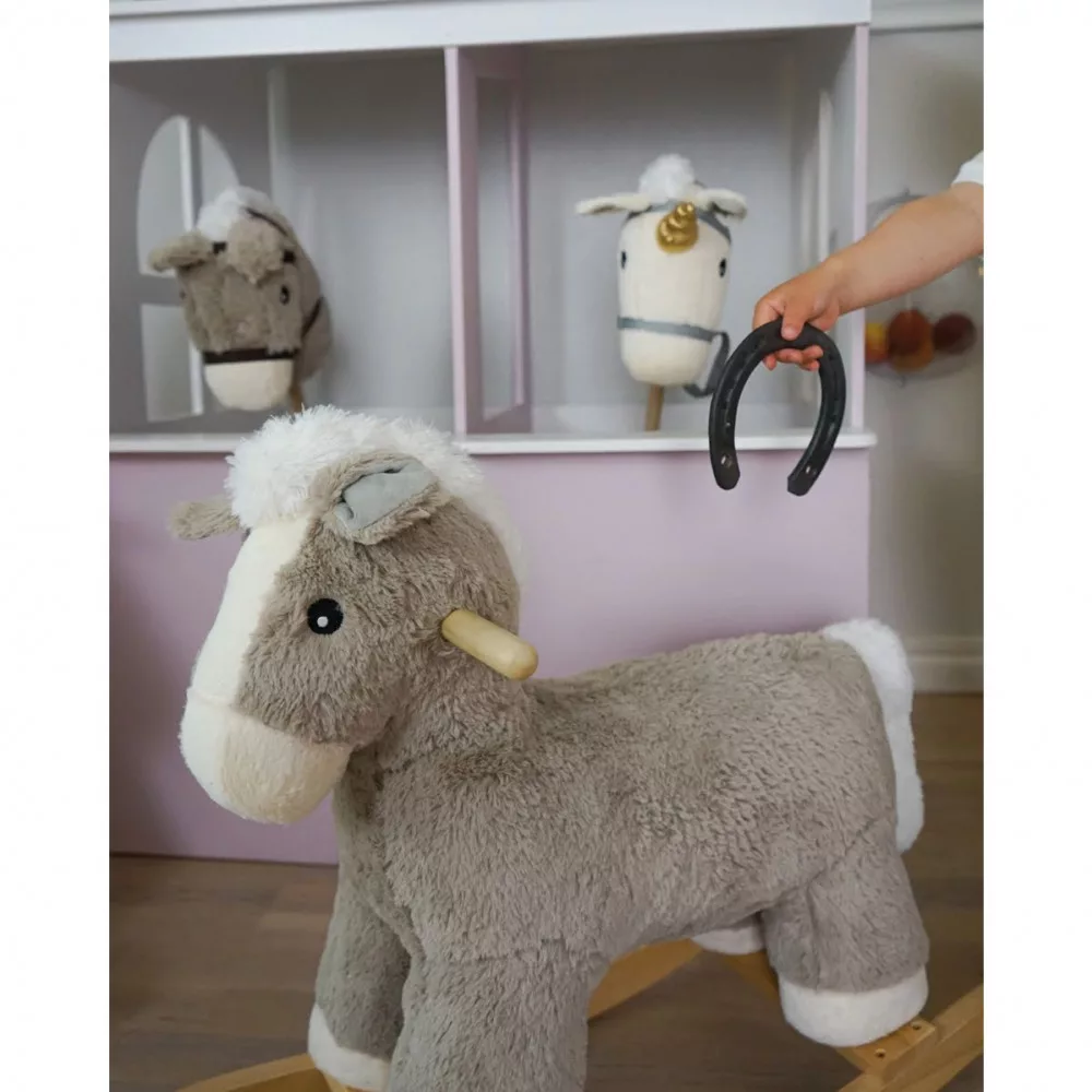 Aranyos hobby lovacska szürke és fehér színben, hozzá tartozó kantárral. Építs egy akadálypályát, és versenyezz barátaiddal, hogy ki ugrik a legmagasabbra, és ki ér elsőként célba. Vagy miért ne lovagolhatnál csak úgy az erdőben az új társaddal és legjobb barátoddal.