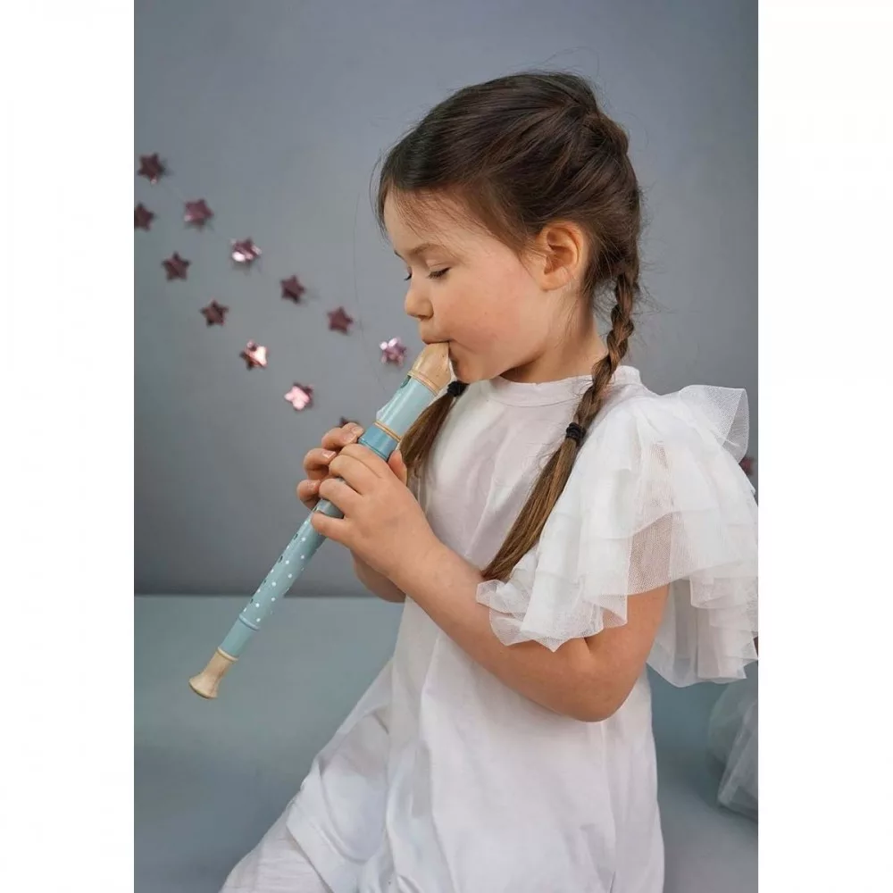 Fából készült furulya hűvös, pasztell kék árnyalatban. A játékkal megtanulhatod, hogyan kell megszólaltatni a különböző hangokat és egyszerűbb dallamokat is eljátszhatsz. A furulya elején 7 lyuk került kialakítására.