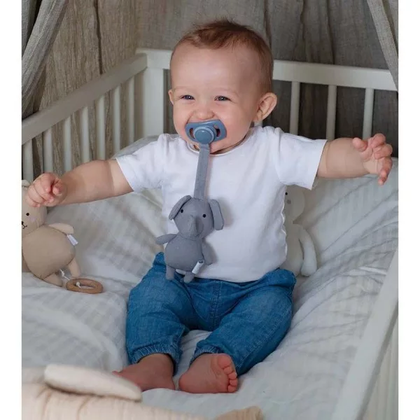 Ebben az exkluzív díszdobozban a stílusos babatakarónk egy kis cumitartóval érkezik. Nagyszerű ajándék első születésnapra, keresztelőre, vagy akár babalátogatáskor első ajándéknak. A takaró puha 100% pamutból készült. A cumitartóra plüss játék bármilyen típusú cumihoz csatlakoztatható.