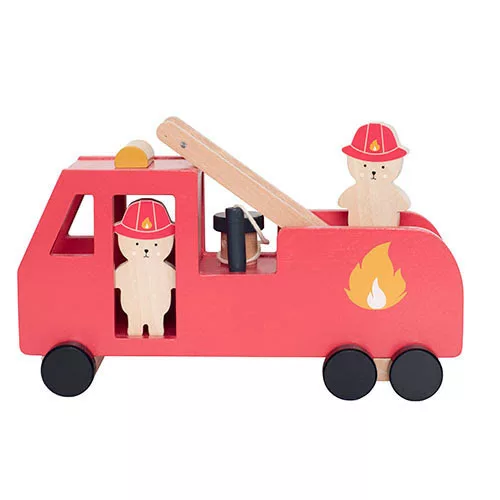 Tűzoltó autó fából, maci figurákkal Jabadabado