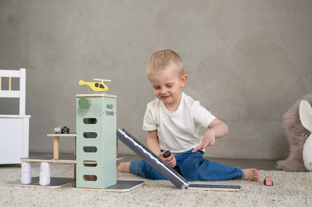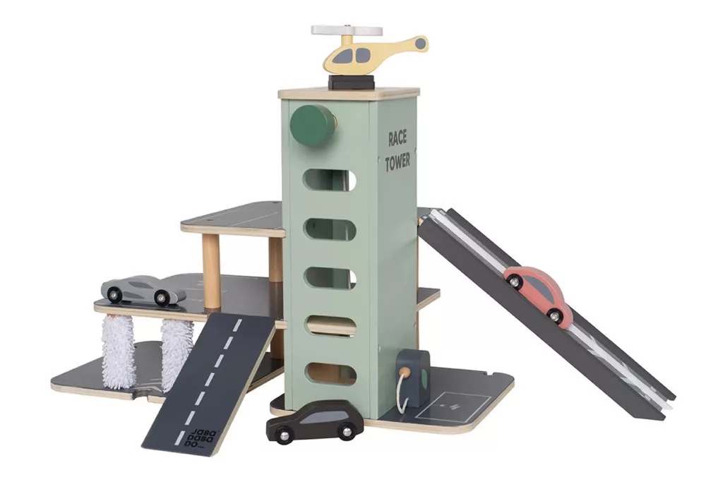 A Jabadabado menő és pörgős fából készült parkolója rengeteg játéklehetőséget kínál minden autó rajongó kisgyerek számára.