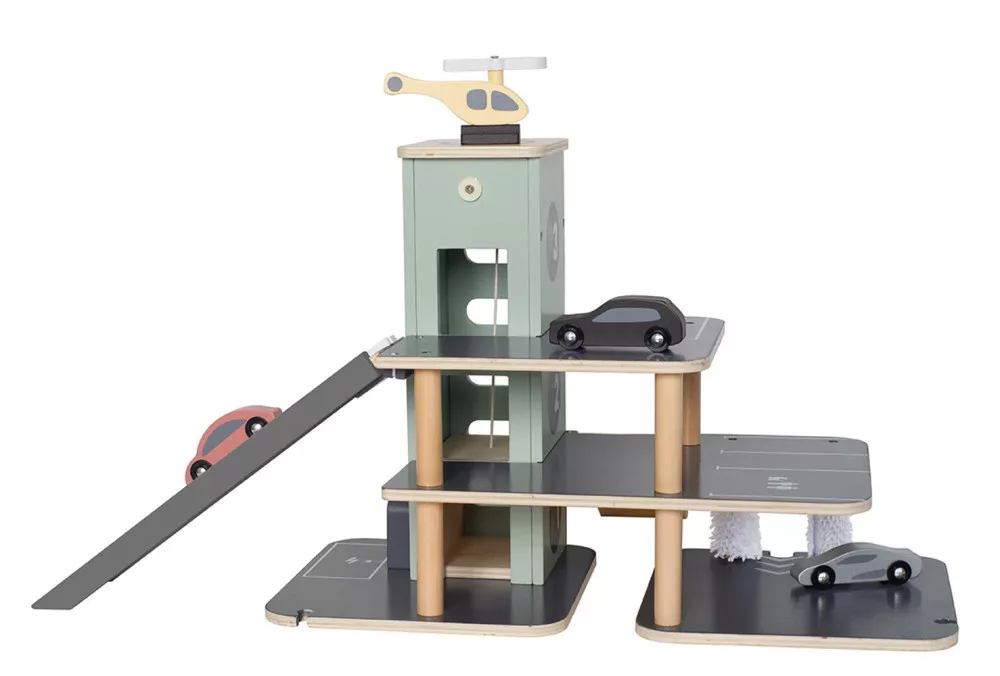Versenyezz barátaiddal a rámpán, ahol két autó egymás mellett haladhat. Ki lesz a gyorsabb? Ezután tankoljátok vagy töltsétek fel az autót, majd a lifttel újra a parkolóház tetejére juthattok. Ha az autók útközben összekoszolódtak, vegyétek az irányt az alsó szinten található autómosóba. A játékkészletben egy helikopter is található.