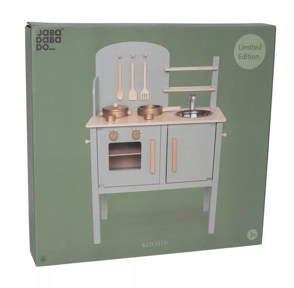 Ezzel a szép zöld színű játékkonyhával gyorsan igazi mesterszakáccsá válhatsz. A konyha sok vidám részletet tartalmaz, például mosogatót, főzőlapot, sütőt, valamint fazekat, serpenyőt és három konyhai eszközt. Engedd szabadjára a fantáziádat és készíts csodálatos ételeket az egész családnak! A tűzhely hátulján egy krétatábla található, hogy felírhasd, mi lesz a vacsora vagy a napi menü. A konyha fel van szerelve egy tárolószekrénnyel és két tároló polccal, ahol bőven van hely minden kelléknek. Az ajtók nyithatók, a főzőlaphoz tartozó gombok pedig csavarhatók, így szabályozhatod a hőfokot. Ha végeztél a főzéssel, a konyhában elmosogathatod az edényeket.