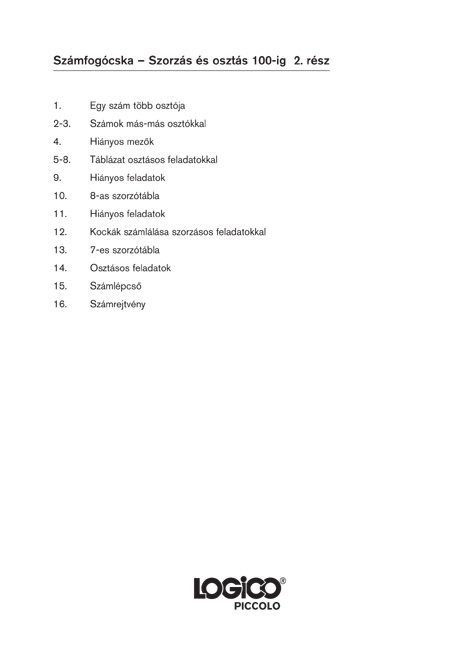 Számfogócska: Szorzás és osztás 100-ig 2. rész LOGICO Piccolo