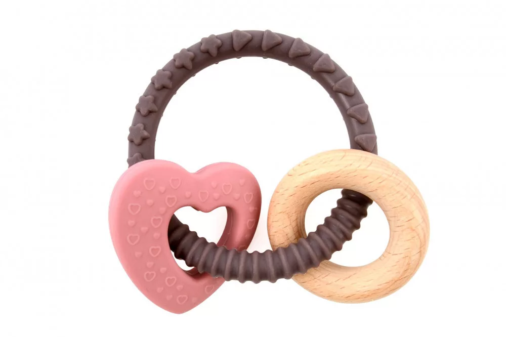 Ez a gyönyörű szilikonból és kezeletlen bükkfából készült rágóka tökéletes játék a baba kis kezeinek. A puha fa és a színes szilikon figurák serkenti a csecsemő látását és mozgását.