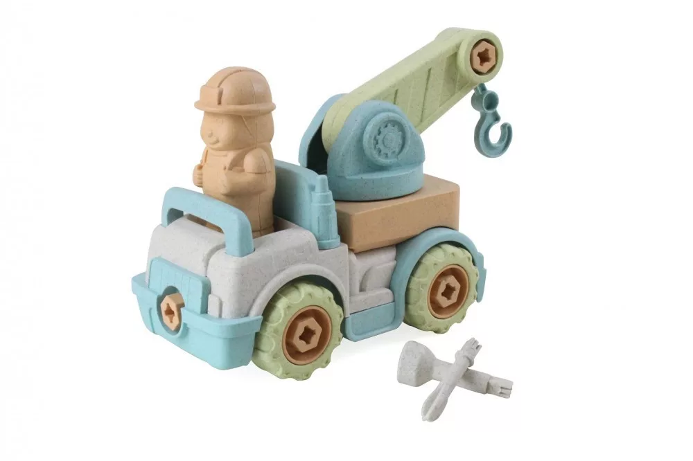 Összeszerelhető játék vonóhorgos építőipari autó lebomló öko anyagokból!