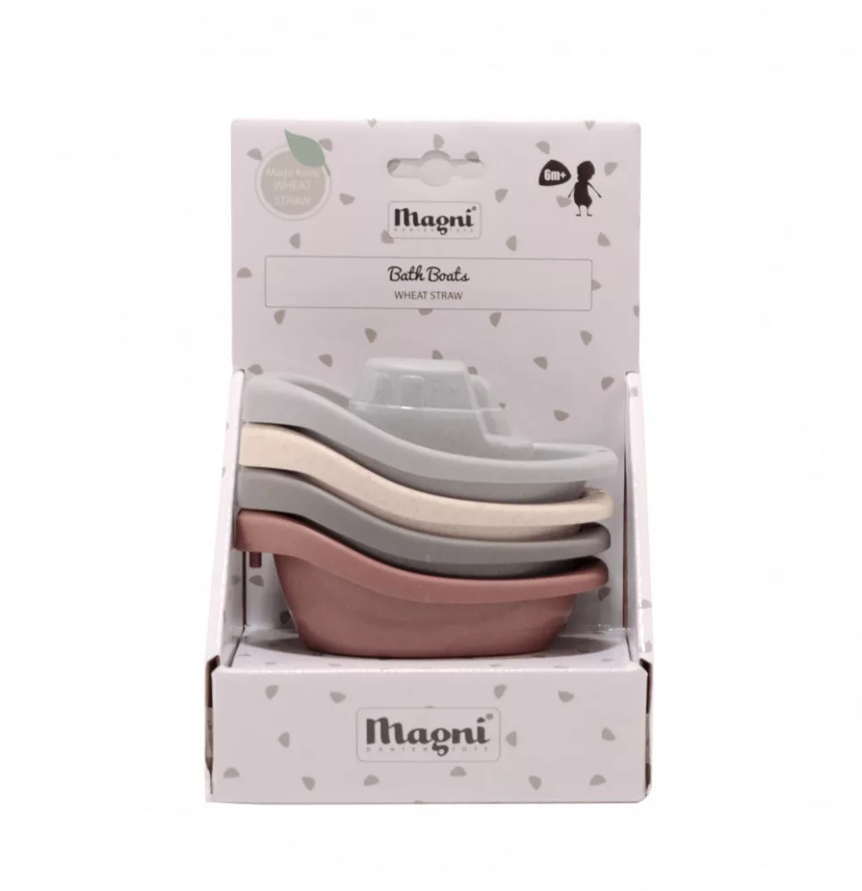 Szerves, lebomló anyagokból készült öko fürdőjáték megnyugtató színekben a Magni márkától! Remek szórakozás, mely hosszú időre leköti a kicsik figyelmét. A csomagban 4 db különböző színű kishajó található.