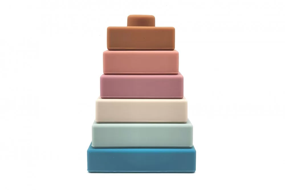 Gyönyörű színekben pompázó toronyépítő játék, amely kiváló minőségű szilikonból készült. A játék által a kicsik megtanulhatják a színek és formák felismerését, miközben fejlesztik logikai gondolkodásukat.
