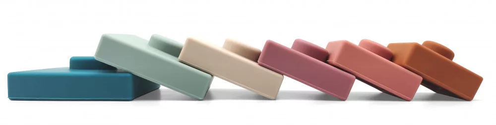 A játék 6 db szilikon építőelemből áll, eltérő méretekben.