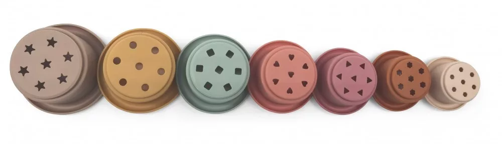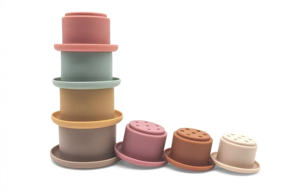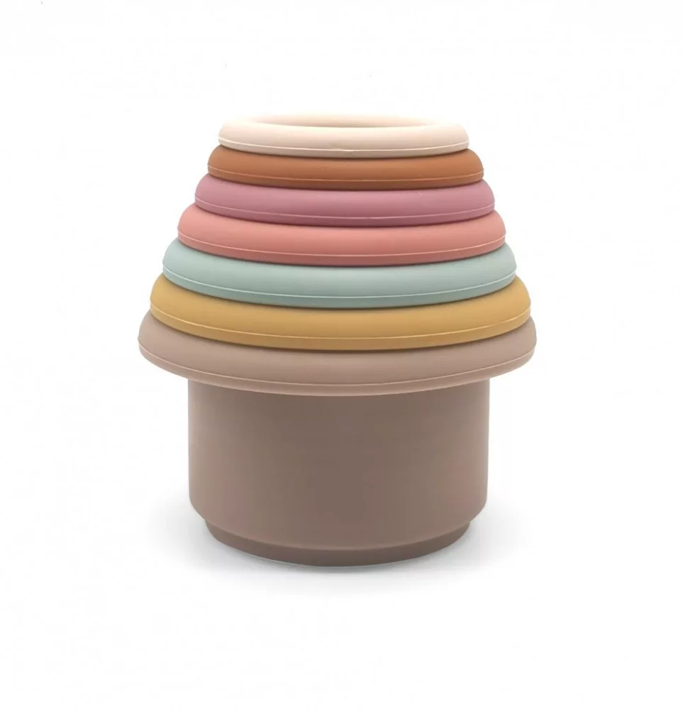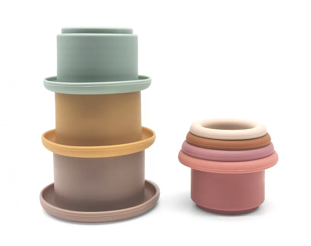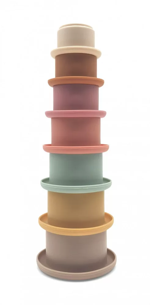 Szilikonból készült aranyos építőjáték meseszép pasztelles árnyalatokkal. A csészéket egymásra helyezve torony építhető, de akár egymásba is lehet rakni őket.