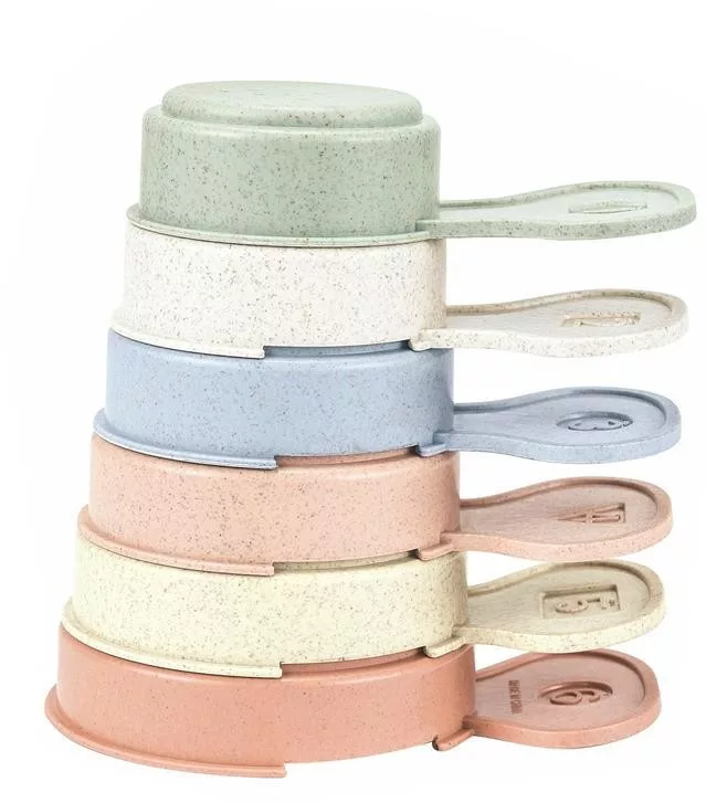 A csomagban 6 db különböző méretű és színű pohárka található, melyek fogantyúja számokkal és formákkal ellátott.
