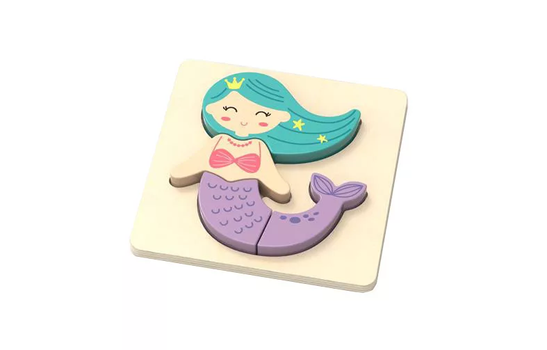 Fából készült formabeillesztő puzzle a legkisebbek számára, amely egy kedves sellőt ábrázol! A puzzle darabjai tökéletesen elférnek a kis kezekben, könnyen megfoghatók és beilleszthetők a helyükre, így fejlesztve a finommotorikát. A játék 4 db elemből és a formabeillesztő táblából áll.