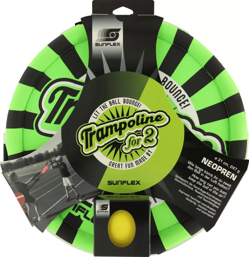Tapasztalja meg a dupla szórakozást és izgalmat a Sunflex Neoprén ugró labda ügyességi játékkal! Ez az innovatív játék tökéletes a dinamikus párbajokhoz, ugyanakkor elősegíti a fontos motoros készségek fejlődését. Zsonglőrködj vagy tartsd a labdát a levegőben! Két személyes játék bel és kültéri használatra egyaránt.