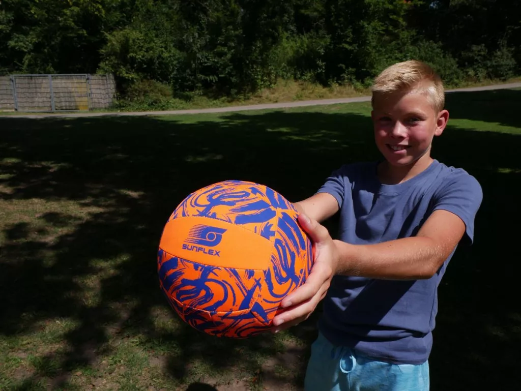 A Sunflex narancssárga neoprén strandlabda Jerseyprene Lite anyagból készült, ezért rugalmas és puha, de mégis rendkívül strapabíró. Csúszásmentes tapadása és hosszú élettartamú minősége miatt ideális játék gyerekek és felnőttek számára. Remek játék, amely fejleszti a dobást, elkapást, gurítást.