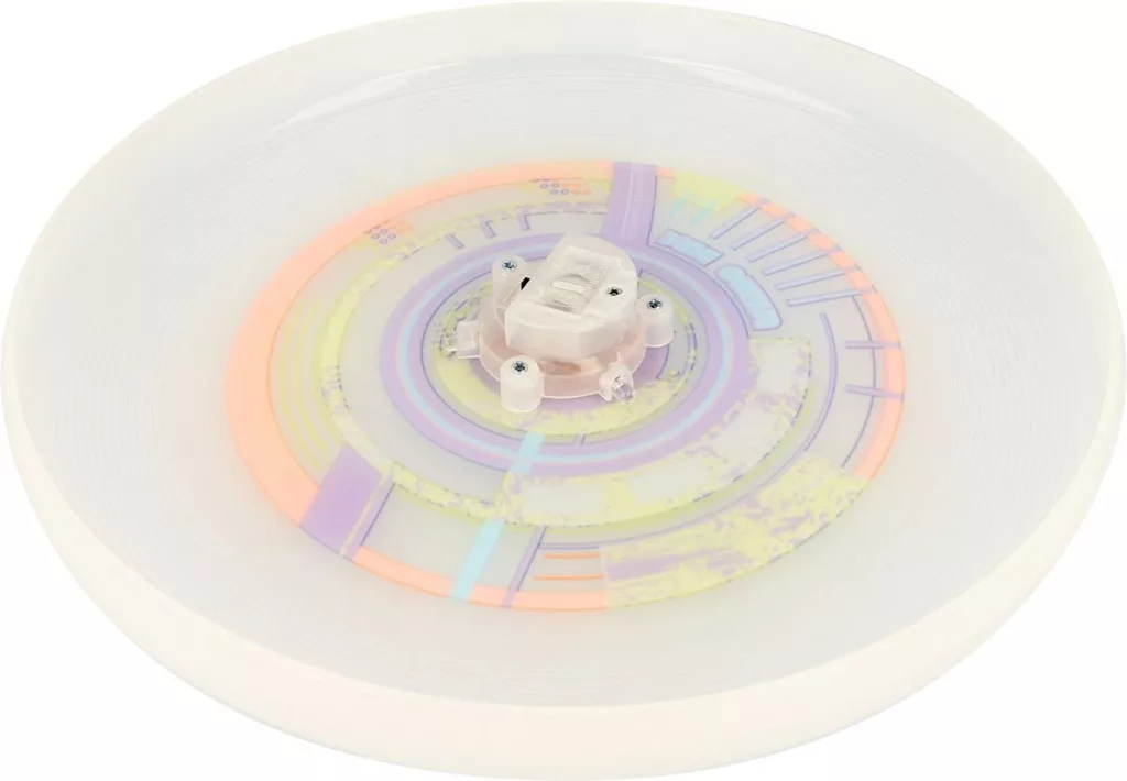 A Sunflex különleges frizbije világító LED fényekkel lett felszerelve, ami azt jelenti, hogy még sötétedés után is könnyedén játszhatsz, és lenyűgöző fényjáték kiséretében élvezheted a mozgást. A játék elemmel működik, amely hosszú élettartamot biztosít a LED fény számára. Kiváló szórakozás kicsiknek és nagyoknak!
