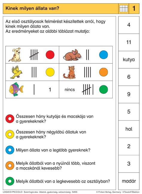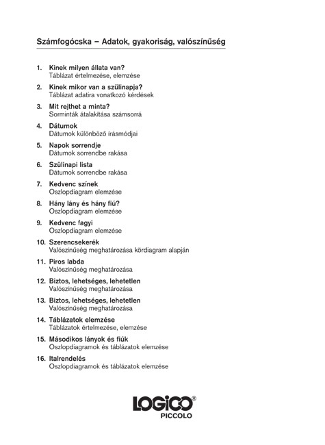 Számfogócska: Adatok, gyakoriság, valószínűség Logico Piccolo