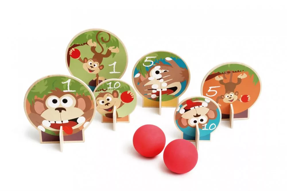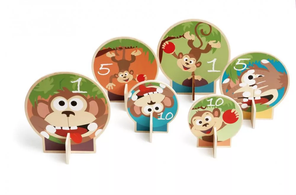 Próbáld meg eltalálni az összes majmot, játsz mind az öt céltáblára! A játékot beltérben vagy a szabadba is űzheted a még nagyobb izgalom érdekében! Versengj akár családoddal vagy barátaiddal!